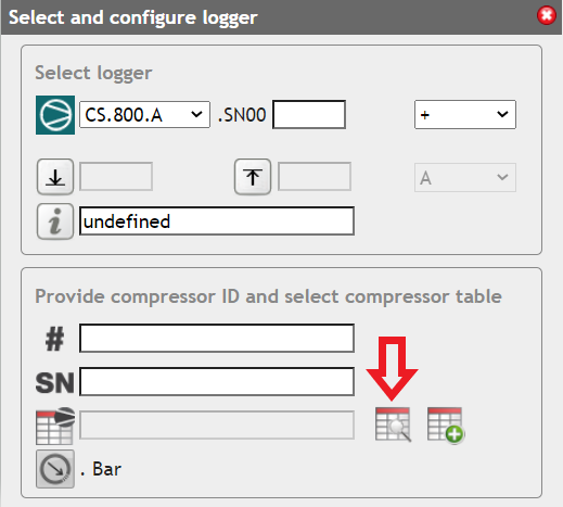Observe the message indicating that you must save the edited global compressor table! SCADAR.NET will generate a new name for the table which you can change as required. When ready, click 'SAVE AS' and you will be returned to the 'Select and configure logger window...
