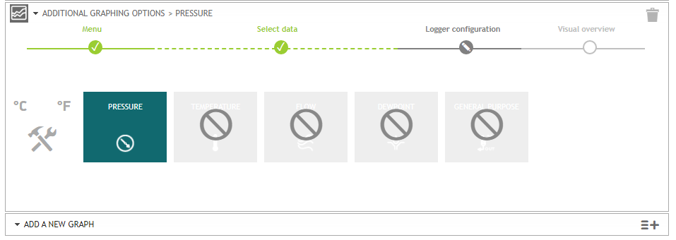 If your audit doesn't have temperature logger, flow logger, dew point logger, or 4-20mA logger, you'll see those graphs gray out as the picture below.