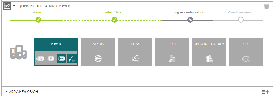 Other type of loggers such as pressure loggers will be grayed out since you're in Equipment Utilization/Power.