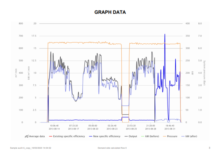 Page 2: Equipment data page describes the equipment used on the RED line, equipment used on the BLUE line, whether Metacentre system control is enabled on the BLUE line as well as the Unit of measure used within the report for Flow, Pressure and Power...