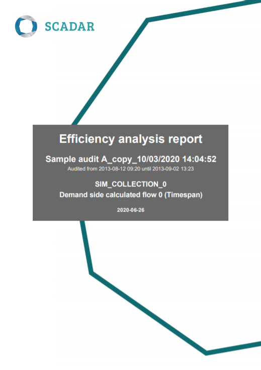 Page 1: Report cover page (Logo, Report name, Linked audit, Simulation collection name, Simulation tab name, Report production date)...